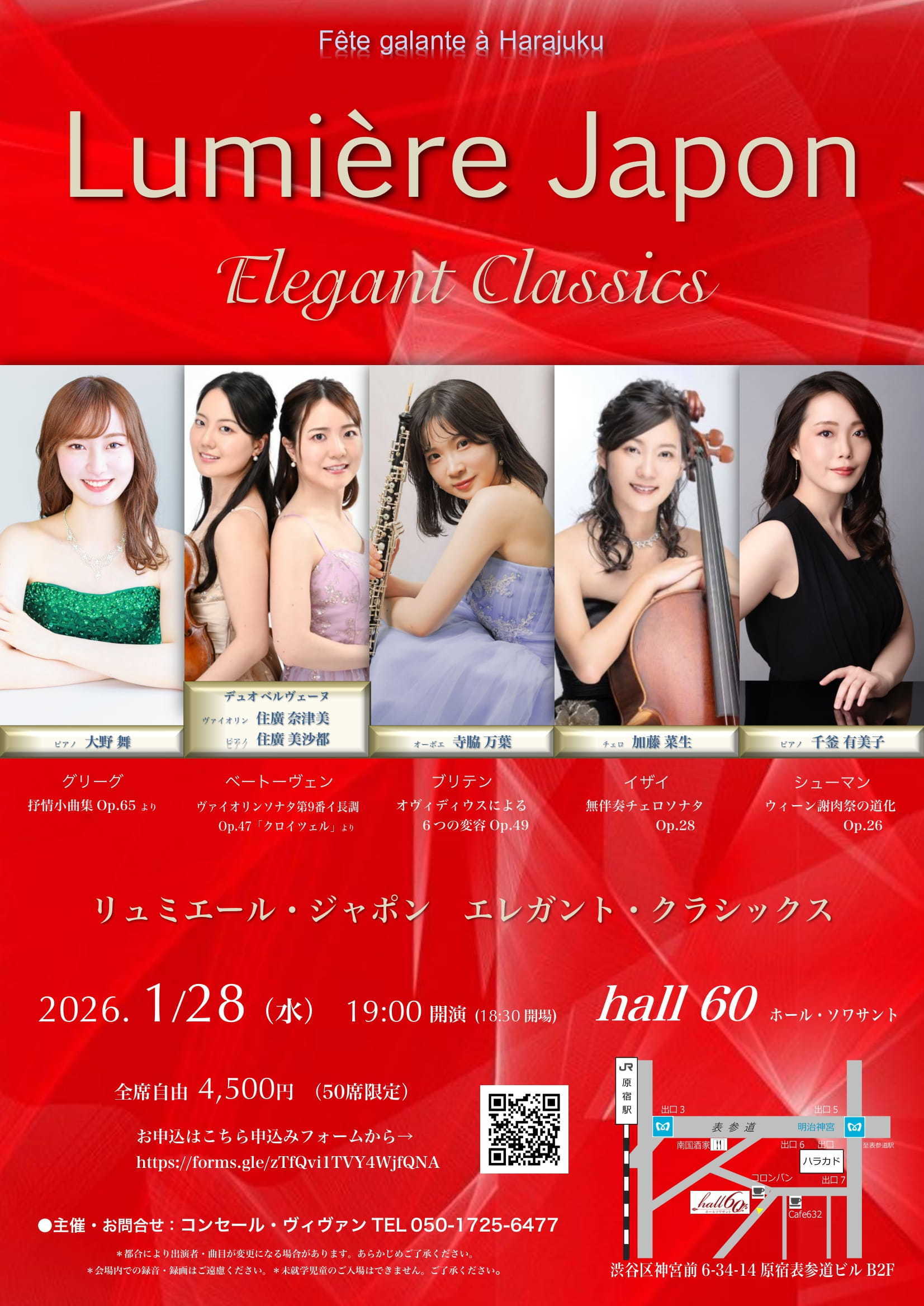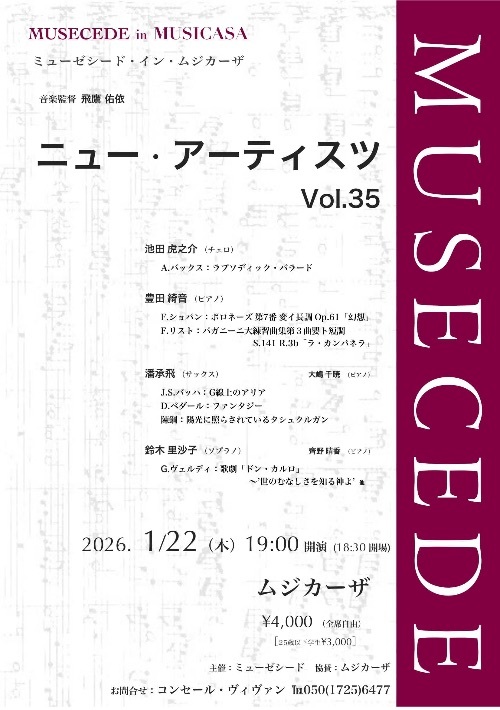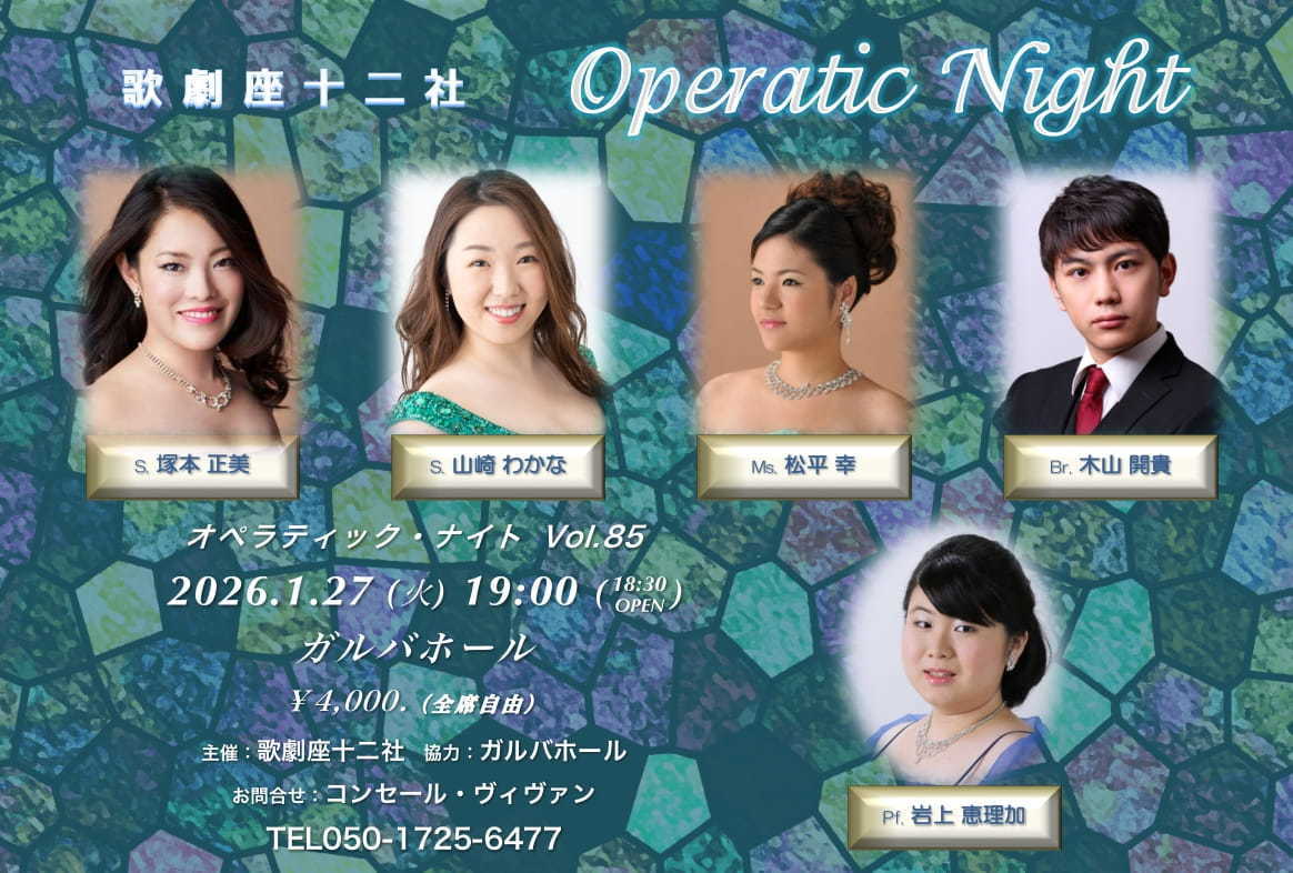 CONCERTS ムジカーザ ミューゼシード ガルバホール 歌劇座十二社 hall60(ホールソワサント) リュミエール・ジャポン hall60(ホールソワサント) リュミエール・ジャポン としま区民センター小ホール アトリエ・エル ムジカーザ ミューゼシード ベヒシュタイン セントラム東京 ミューゼシード ガルバホール 歌劇座十二社 ムジカーザ ミューゼシード お電話でのお問合せ コンセール・ヴィヴァン TEL 050-1725-6477